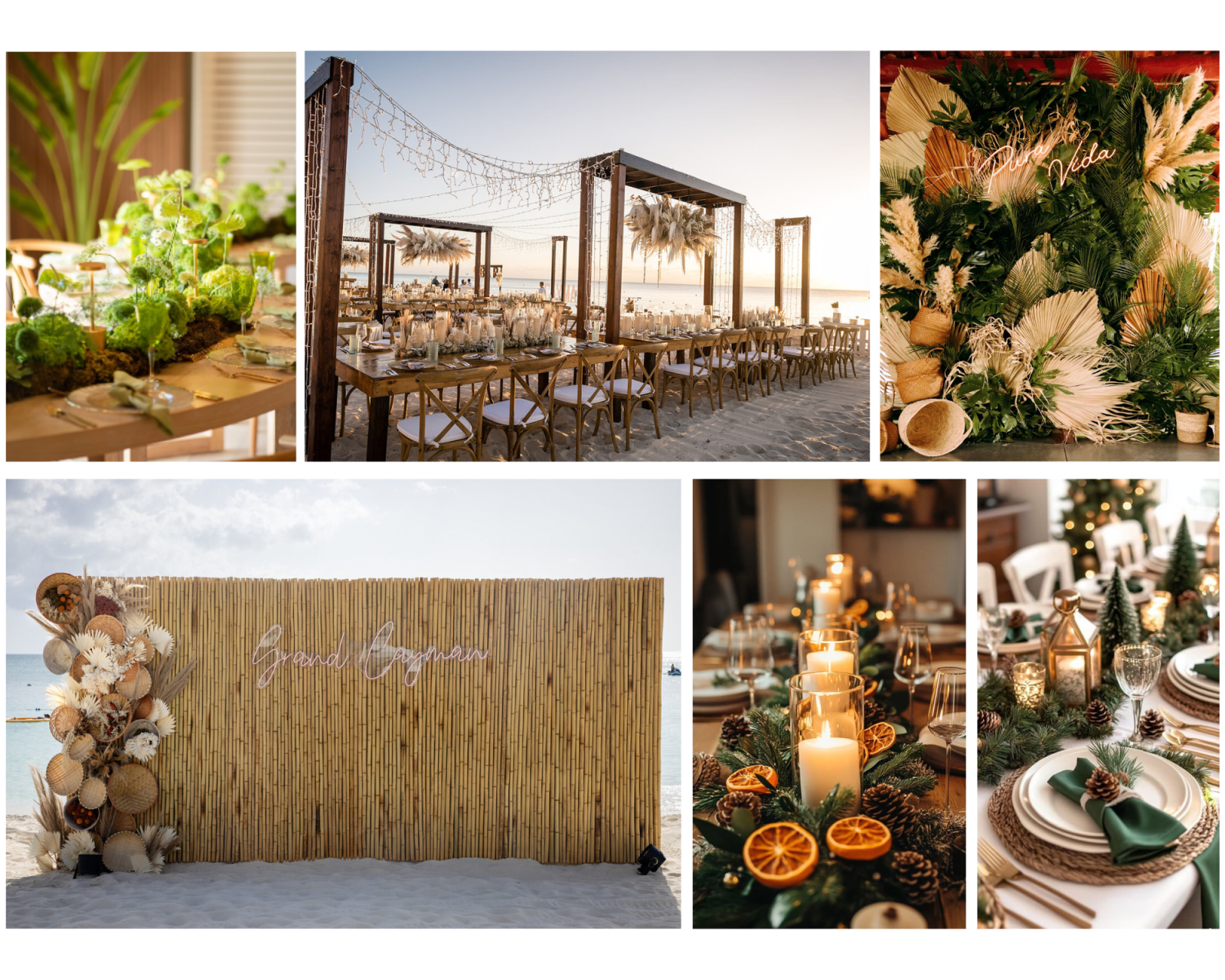 In our beautiful Cayman environment, eco-conscious design is not just a trend; it is a responsibility. This approach integrates nature directly into your décor, creating a warm, authentic, and earth-friendly celebration.