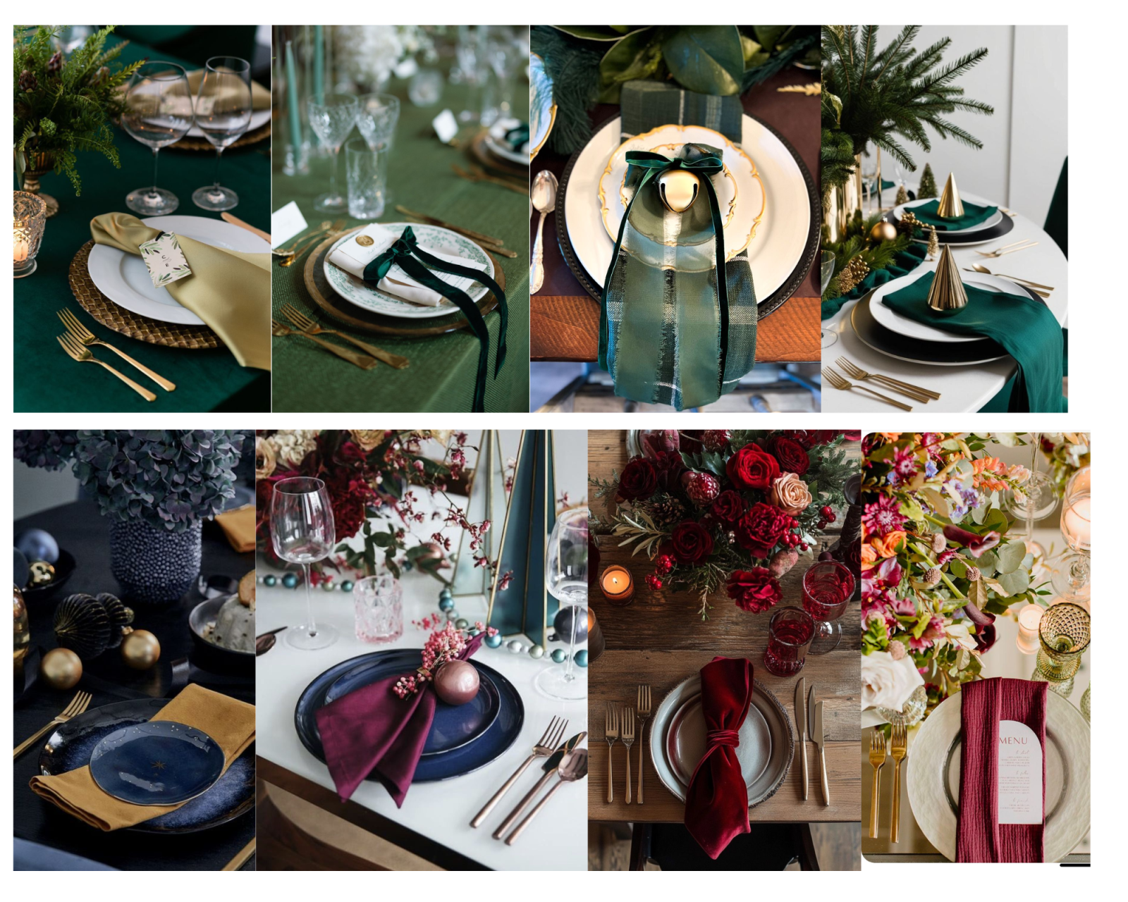 • Color Palette: Deep, jewel-toned accents are key. Imagine rich emerald, green velvet ribbons, sapphire blue glassware, or burgundy satin napkins. These are paired with a base of sophisticated neutrals like charcoal, ivory, and taupe, all accented with warm metallics like brass and antique gold.